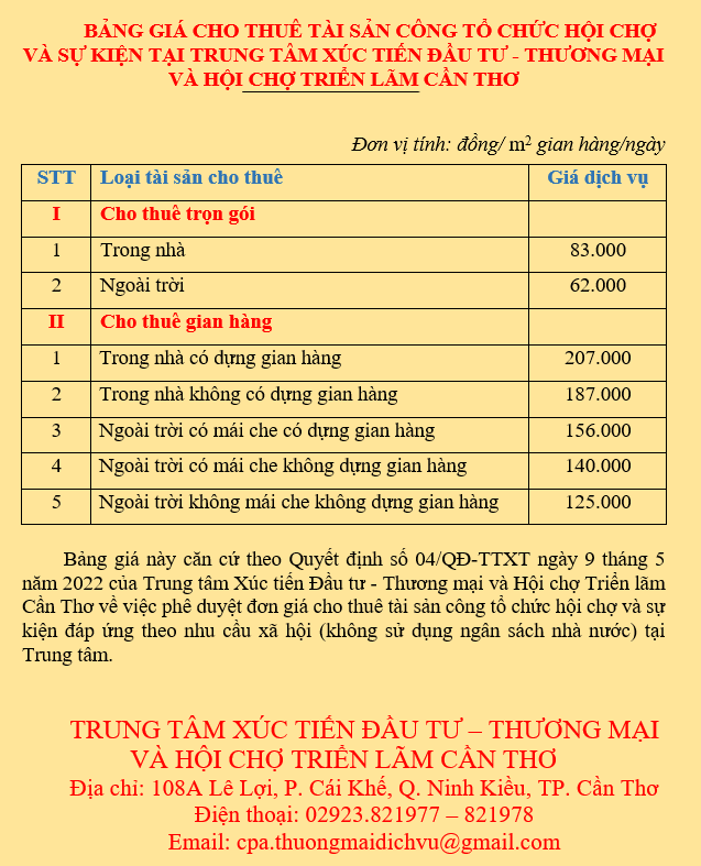 THÔNG BÁO Trụ sở làm việc của Trung tâm Xúc tiến Đầu tư – Thương mại và Hội chợ triển lãm Cần Thơ